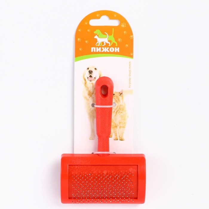 Щётка-пуходёрка малая жесткая с каплями, основание 50х50 мм, красная,