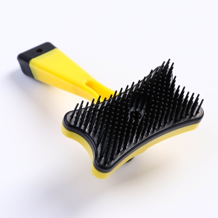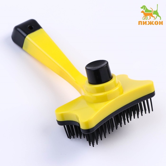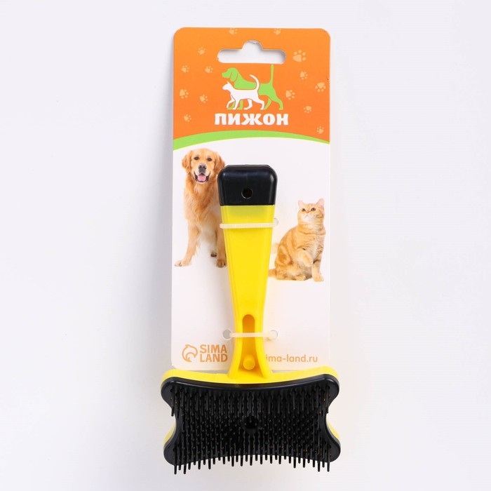 Пуходерка пластиковая "Косточка" с самоочисткой, 8,5 х 12,5 см, жёлтая