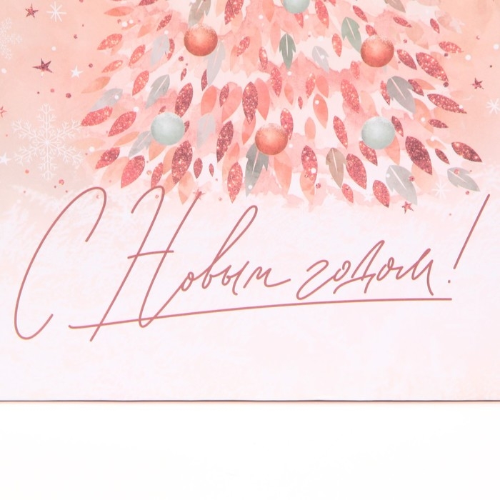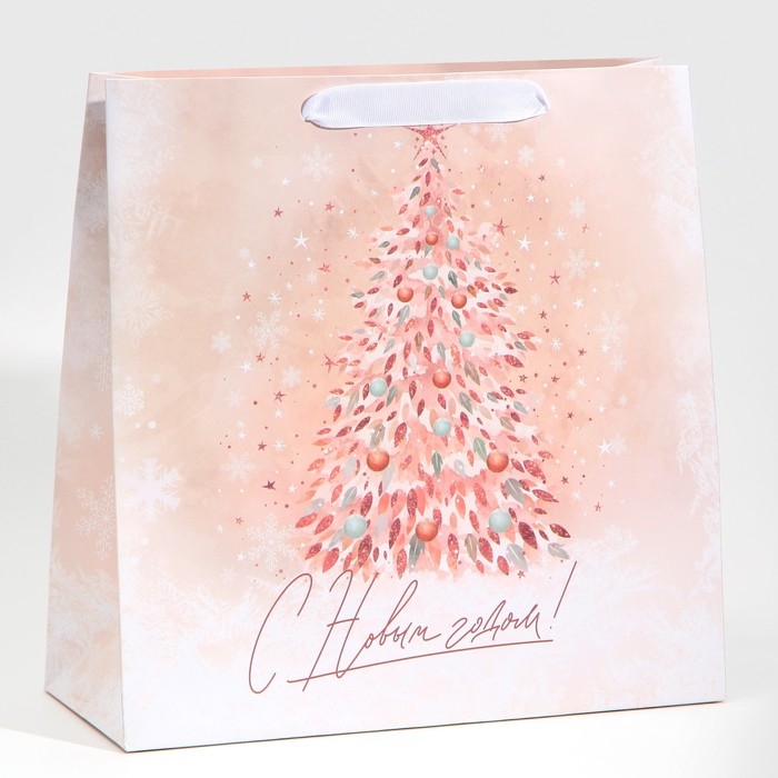 Пакет подарочный новогодний ламинированный квадратный «Pink», 30 х 30 х 12 см, Новый год