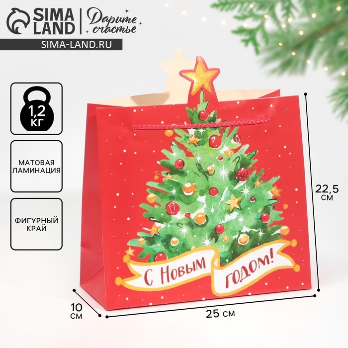 Пакет подарочный новогодний «Ёлочка», 25 х 26 х 10 см, Новый год