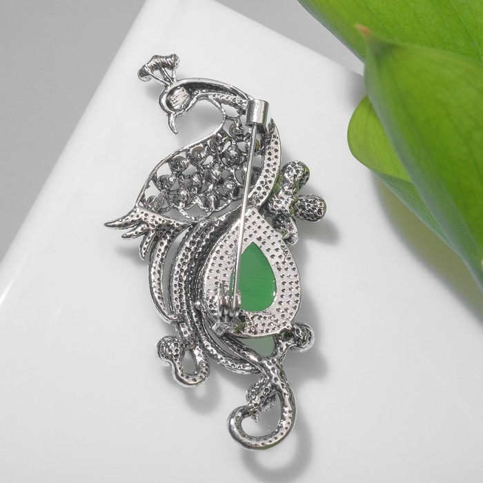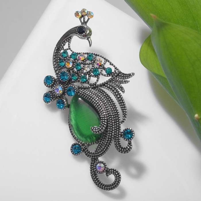 Брошь «Павлин» элегантный, цветная в чернёном серебре