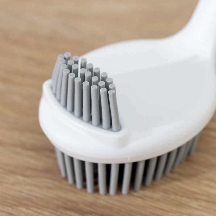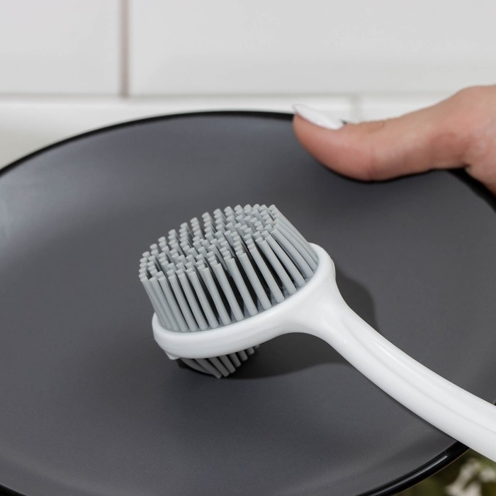Щётка для посуды Доляна Meli — идеальный помощник для мам и домохозяек! Двухсторонняя бамбуковая ручка обеспечивает удобство использования, а мягкий ворс TPR размером 1,8 см позволяет бережно очищать кастрюли, сковороды, противни и гриль. Благодаря отверстию для подвешивания щётка занимает минимум места на кухне. Купите сейчас и наслаждайтесь чистотой без лишних усилий!