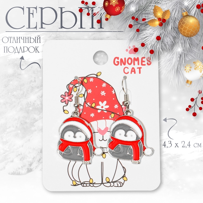Новый год! Серьги «Новогодние» пингвин в колпаке, цветные в серебре