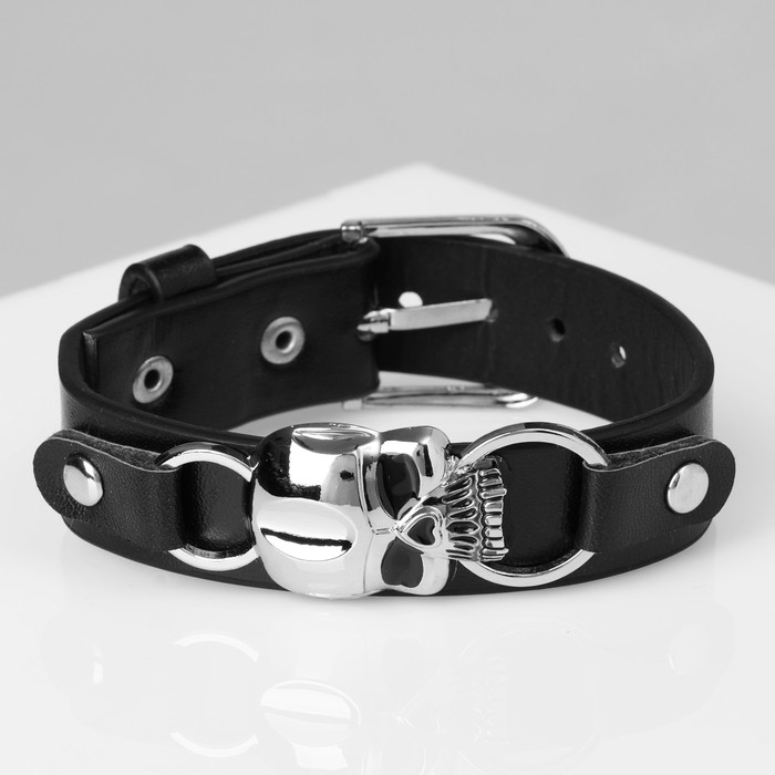 Браслет унисекс «Ремень» череп, цвет чёрный с серебром, 26 см