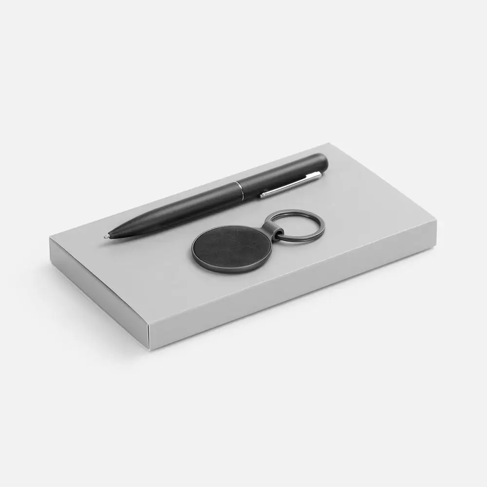 Металлический брелок с элегантной вставкой из искусственной кожи идеально подходит для гравировки и превращает подарок в уникальный символ бренда. Надежная ручка с плавным письмом дополняет комплект, создавая идеальный дуэт для деловых партнеров и клиентов.