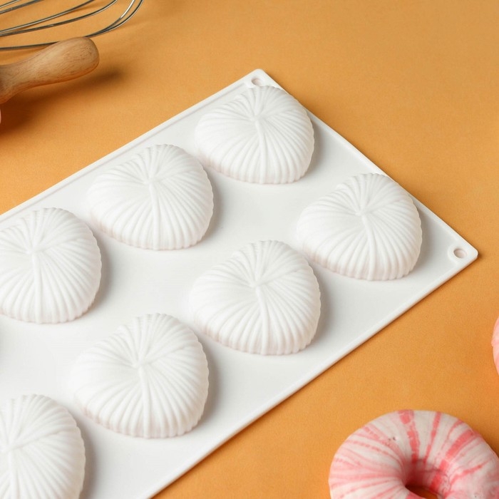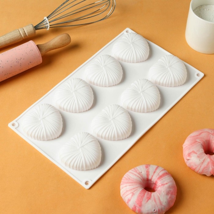 Форма для муссовых десертов и выпечки Доляна «Рябь», силикон, 18×18 см, внутренний размер 16×6,5 см, цвет белый