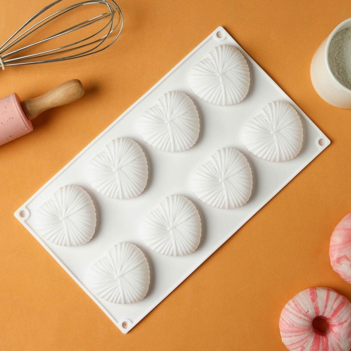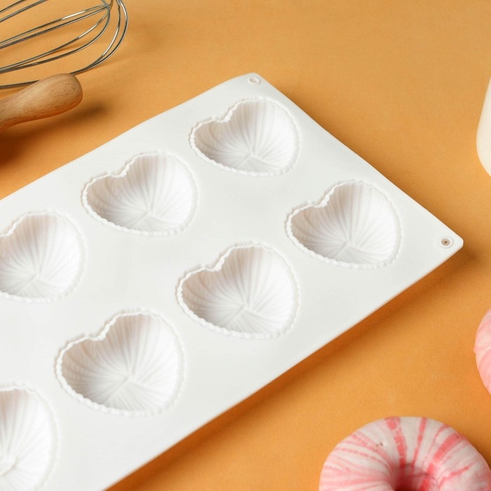 Форма для муссовых десертов Доляна «Сердце», силикон, 29×17×4,3 см, 8 ячеек (5,5×6,2×3,5 см), цвет белый
