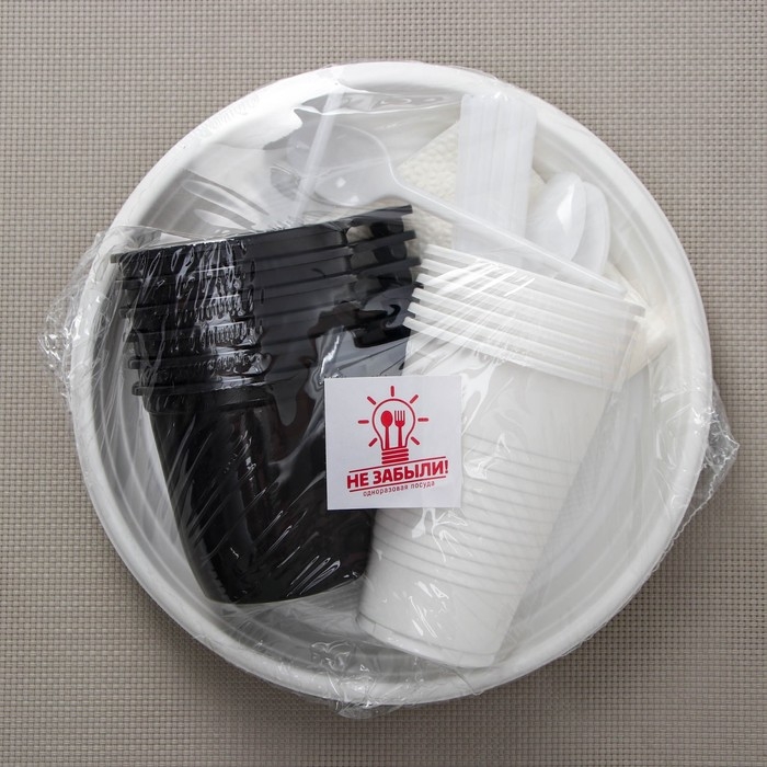 Набор пластиковой одноразовой посуды на 6 персон Не ЗАБЫЛИ! «Чайный №2», цвет белый, чёрный
