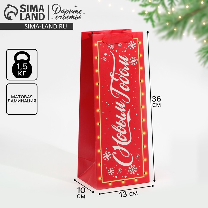 Пакет под бутылку «С Новым годом!», 13 х 36 х 10 см, Новый год