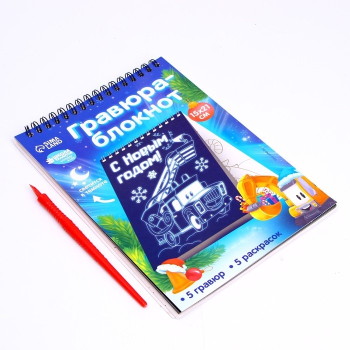 Блокнот лунная гравюра - раскраска на новый год «Транспорт», 14.8 х 21 см