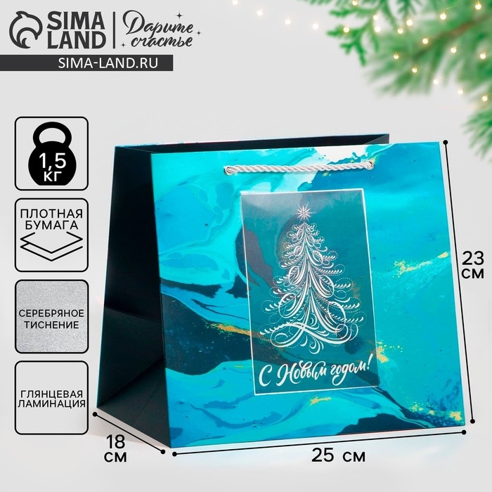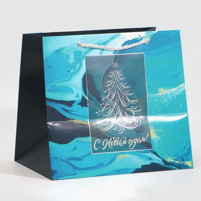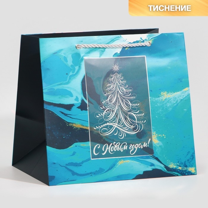Пакет подарочный новогодний ламинированный «Мрамор», 25 х 23 х 18 см, Новый год