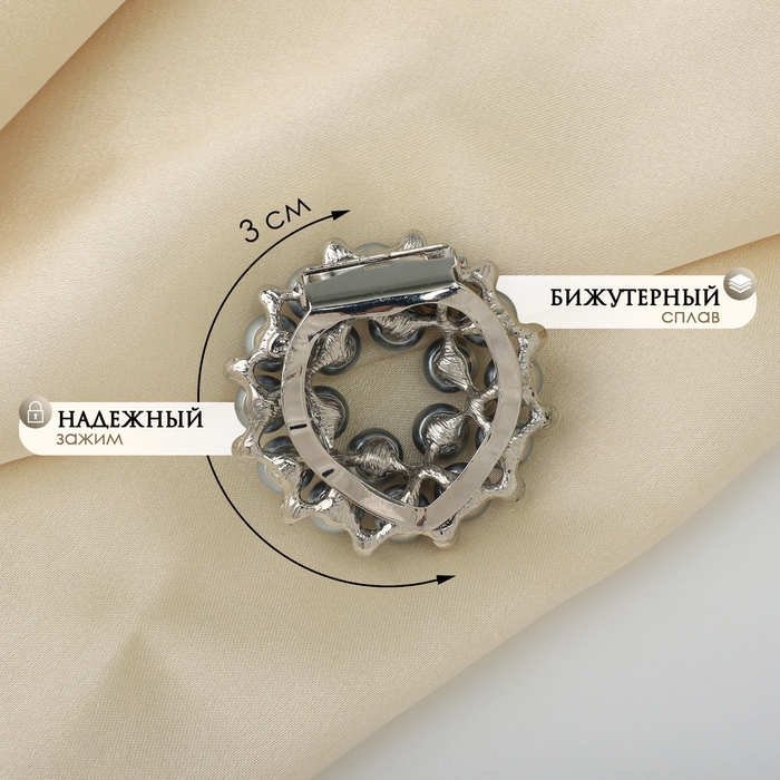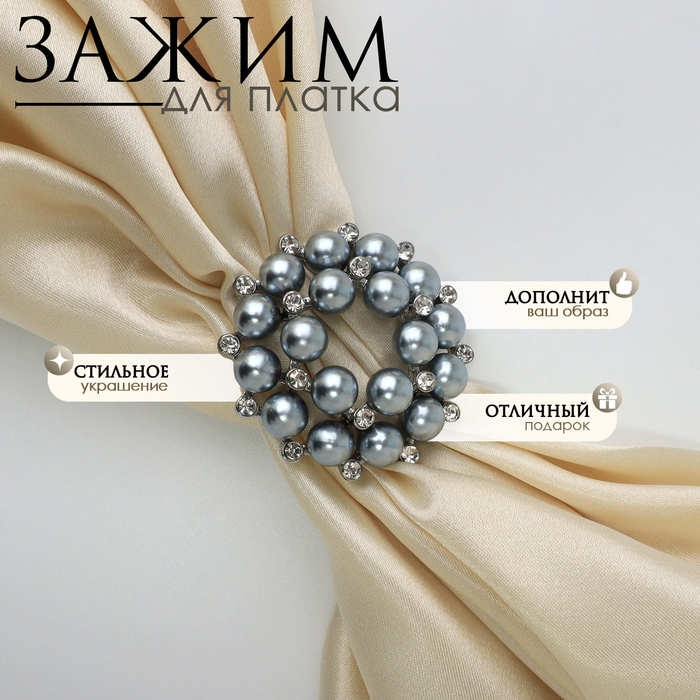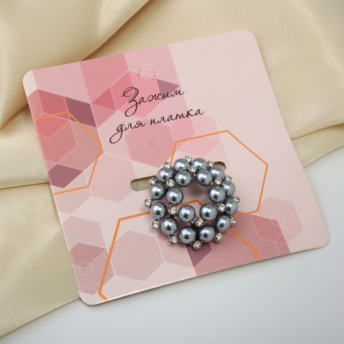 Зажим для платка «Жемчужинка», цвет серый в серебре
