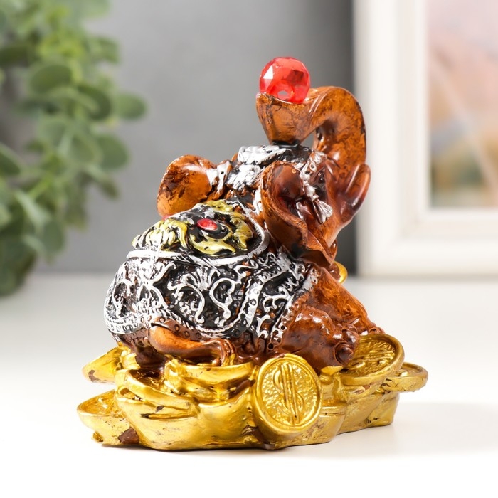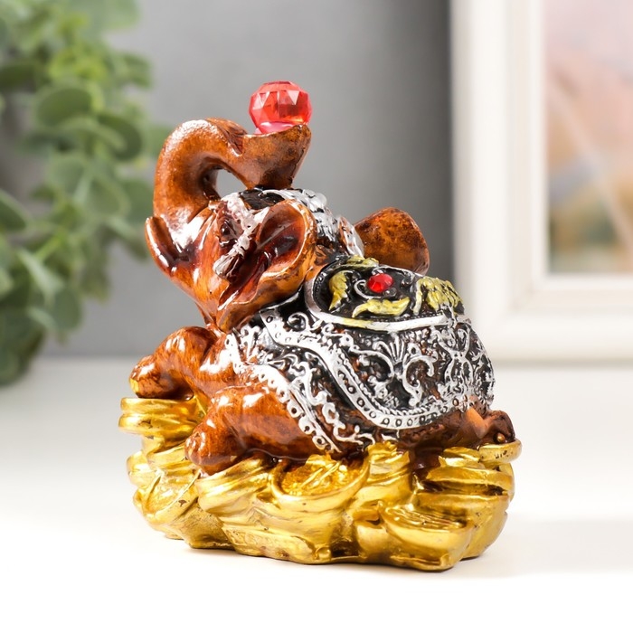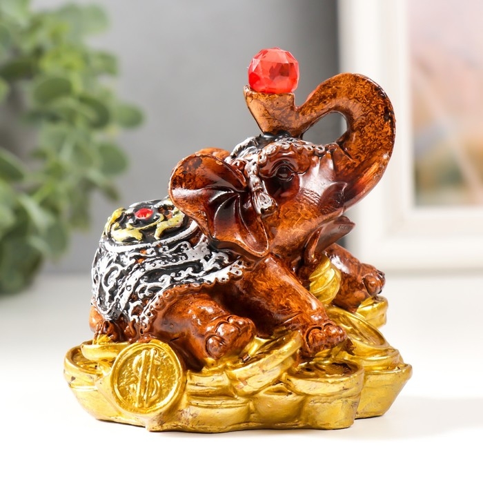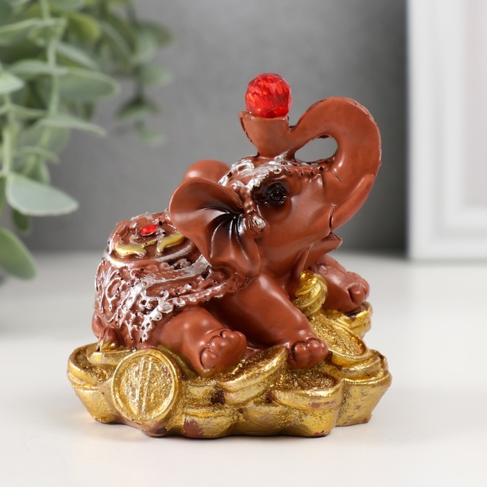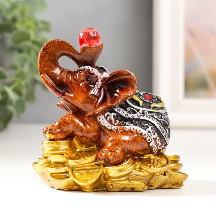 Сувенир полистоун "Слоник с рубином на монетках" 8х6,5х8,5 см