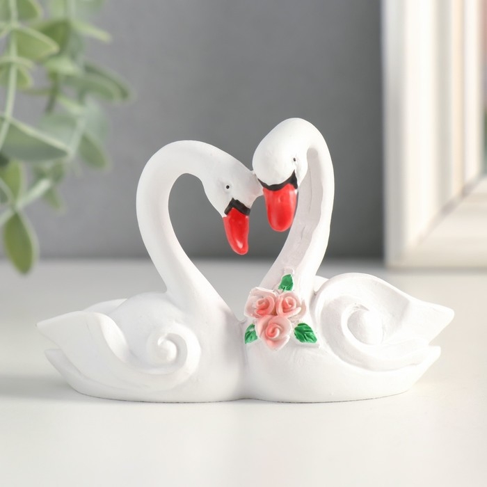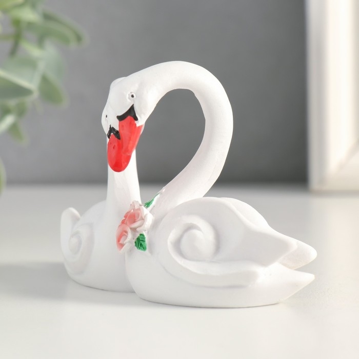 Сувенир полистоун "Два белых лебедя с розами" 3,2х9,5х6,2 см