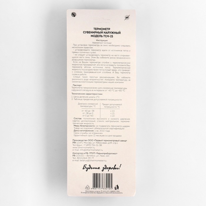 Термометр оконный ТСН-15 "Гвоздик" (t -60 + 60 С) в блистере