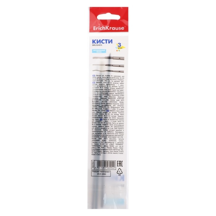 Кисти ErichKrause для рисования акварельными красками и гуашью. Хорошо впитывают и отдают краску, рабочая часть кисти покрыта гуммирующим составом, защищающим ее при хранении и транспортировке. Ручка изготовлена из натурального дерева и покрыта защитным лаком. Кисти разного размера позволяют рисовать как крупными, широкими мазками, так и прорабатывать мелкие детали рисунка. Цельнометаллическая бесшовная обойма из алюминия устойчива к коррозии. Пони круглые- 2,4; Щетина плоская- 6