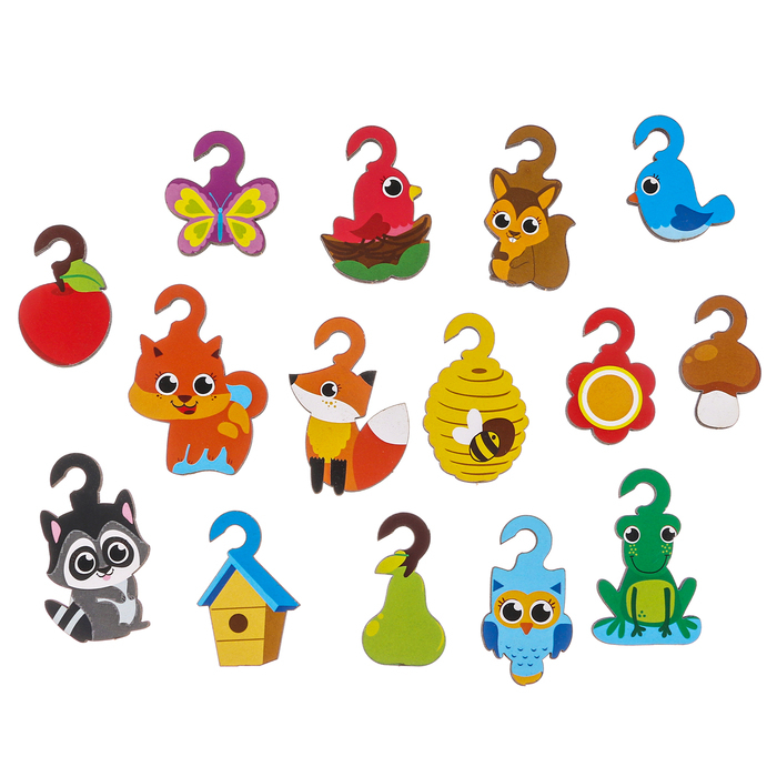 Суть игры: разместить фигурки на крючках на игровом поле.