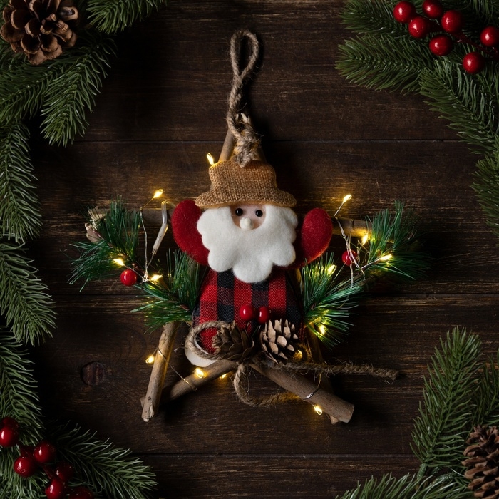 Светодиодная фигура «Звезда с Дедом Морозом» 19 см, пластик, батарейки CR2032х2 (в комплекте), свечение тёплое белое