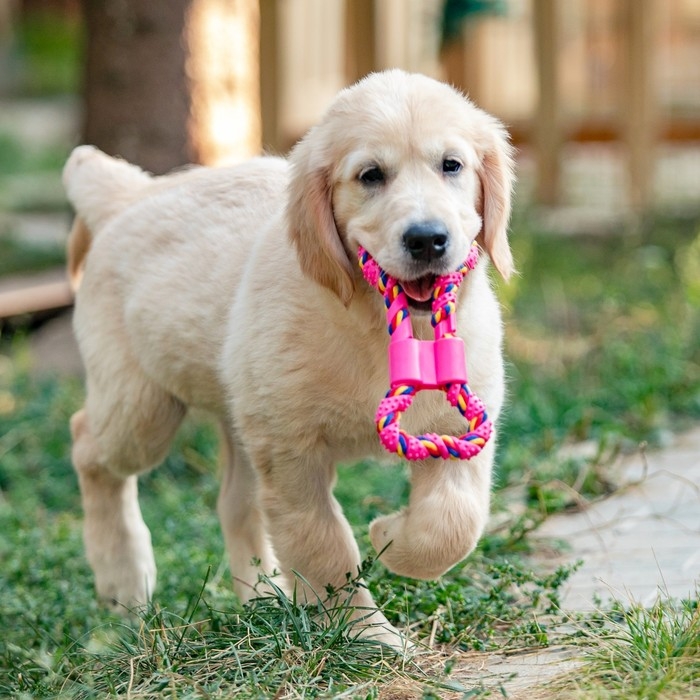 Игрушка витая из резины и каната "Мегакость", 19,5 см, розовая