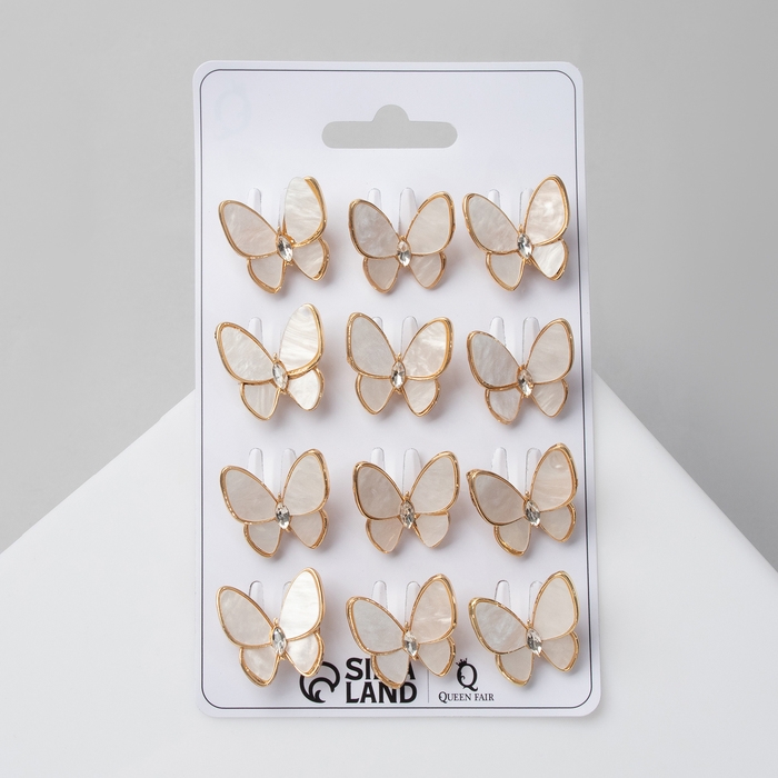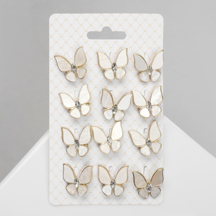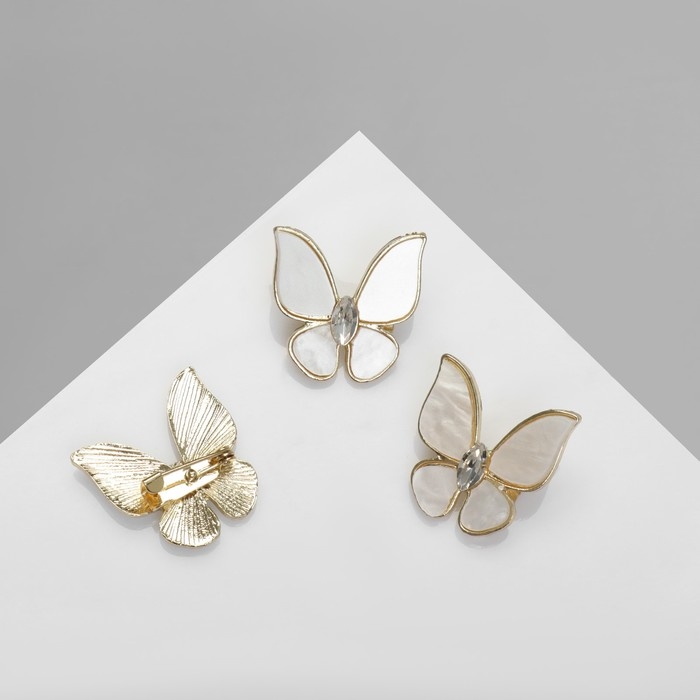 Брошь «Бабочка» нежность, цвет белый в золоте (неделимая фасовка 12 шт., цена за шт.)