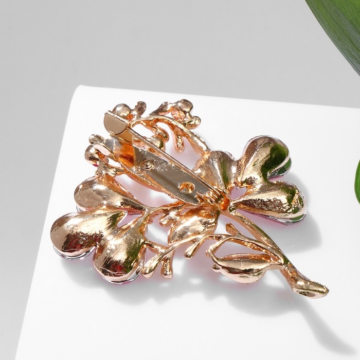 Брошь «Цветок» трилистник, цвет розовый в золоте