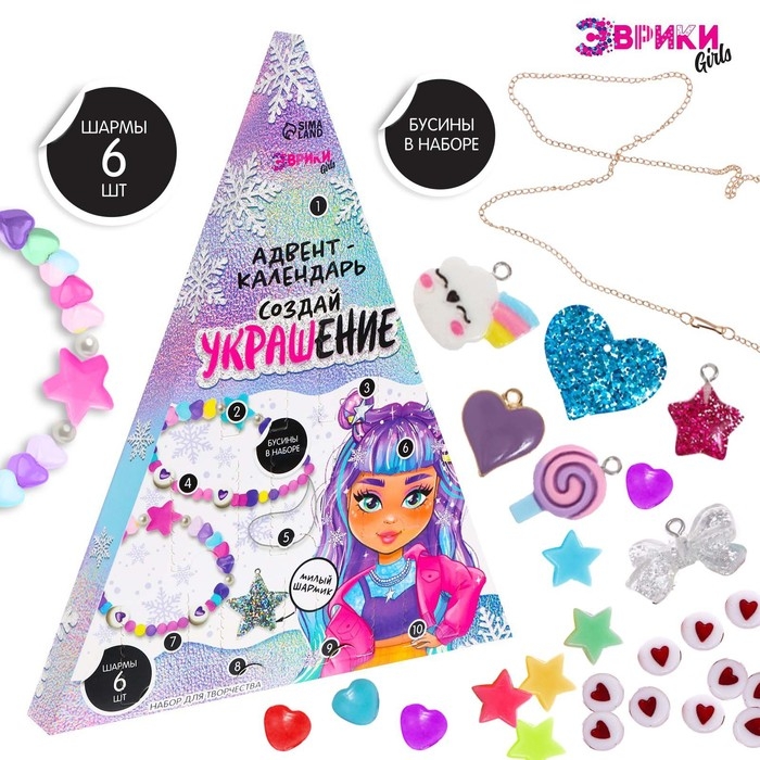 Адвент-календарь на 10 дней «Создай украшение», 10 окошек, 6 шармов