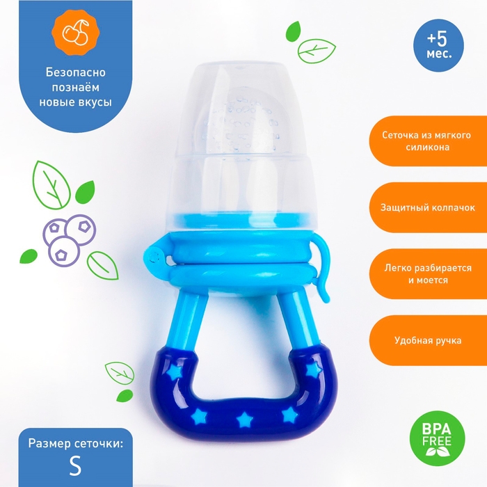 Ниблер для прикорма, с силиконовой сеточкой, в контейнере, цвет голубой