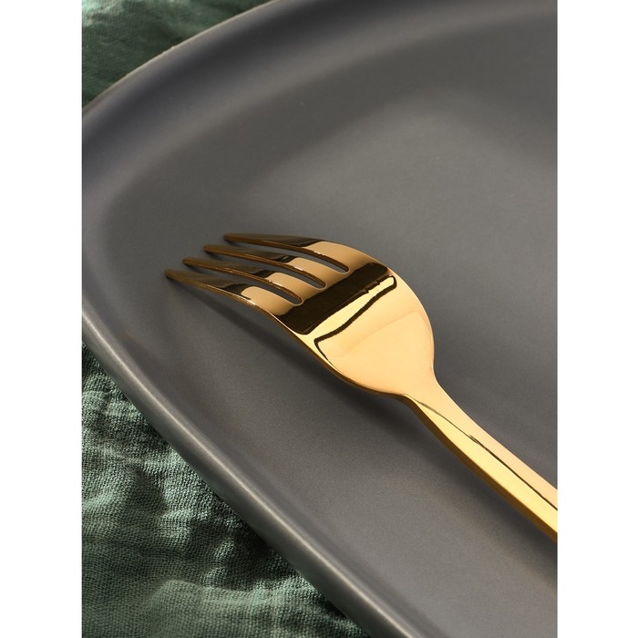 Столовая вилка Magistro «Олин GOLD» — Золотой цвет вилки придаёт изысканность и элегантность вашему интерьеру. Благодаря удобной ручке и острым зубцам, обеспечивает комфорт при использовании и лёгкость в уходе. Приобретая эту столовую вилку, вы получаете надёжный и красивый аксессуар для вашей кухни, который будет радовать вас своим внешним видом и функциональностью на протяжении долгого времени.
