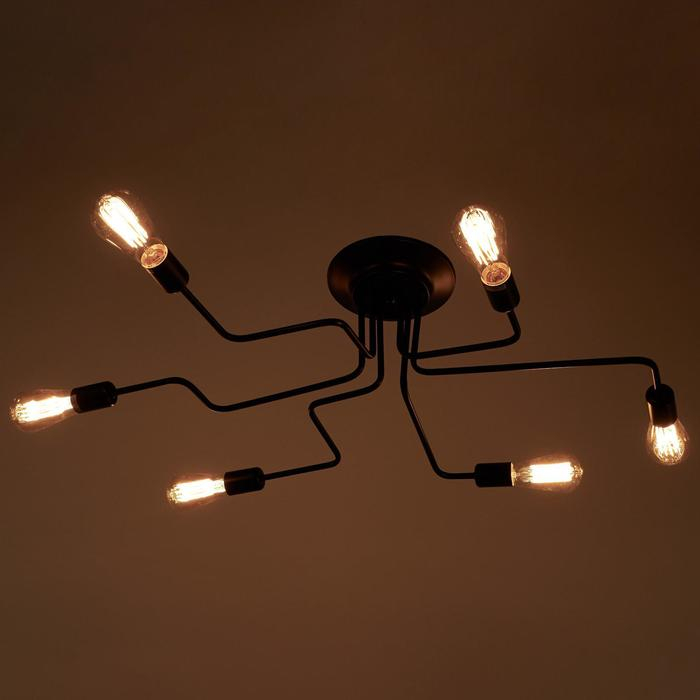 Люстра подходит для интерьера в стиле лофт. Небольшие размеры 80 × 65 × 18 см позволяют разместить светильник в комнате с невысокими потолками, в том числе натяжными.