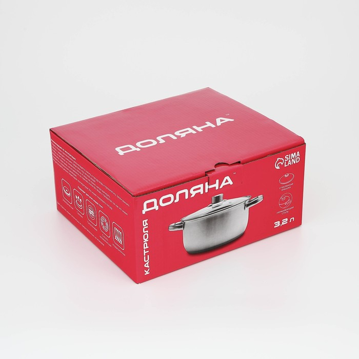 Кастрюля из нержавеющей стали Доляна «Гретте», 3,2 л, d=20 см, с крышкой, капсульное дно, индукция