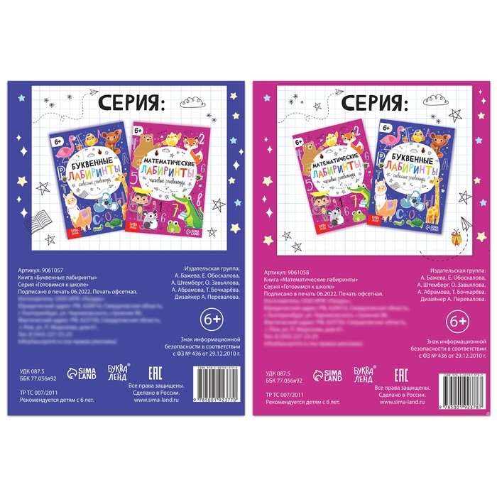 Набор книг «Математические и буквенные лабиринты», 2 шт. по 20 стр., от 6 лет