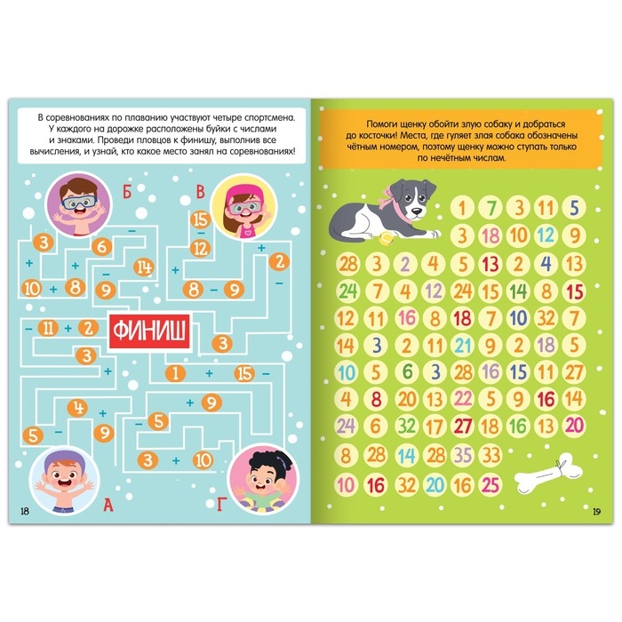 Разнообразные задания помогут отработать навыки чтения и счёта, потренировать пространственное мышление, логику, внимательность и аккуратность и просто весело провести время.