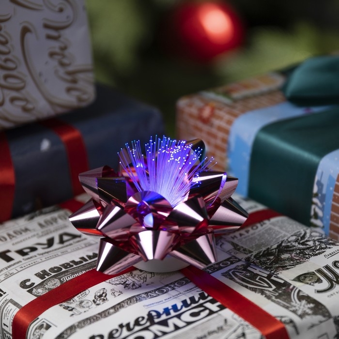 Светодиодная игрушка «Бант-звезда» 9 × 6 × 9 см, батарейки LR44х3 (в комплекте), свечение мульти, розовая