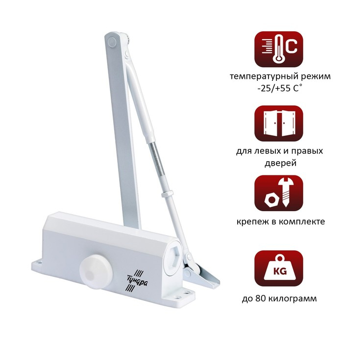 Доводчик дверной ТУНДРА D80WW, от 45-70 кг, белый