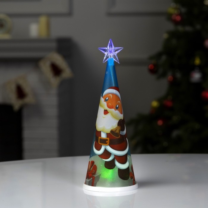 Светодиодная фигура «Ёлка с Дедом Морозом» 7.5 × 21 × 7.5 см, пластик, батарейки CR2032х1 (в комплекте), свечение мульти