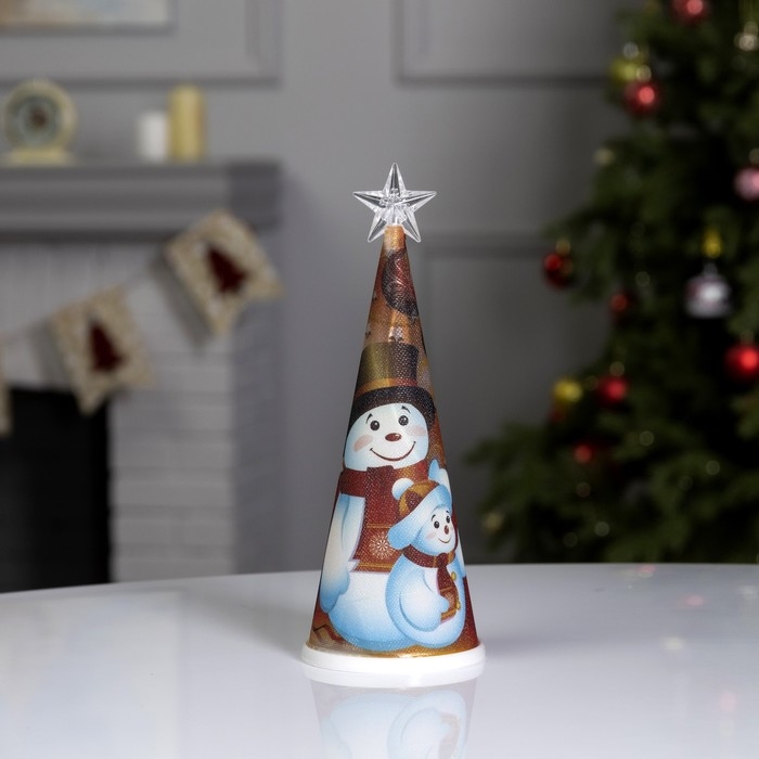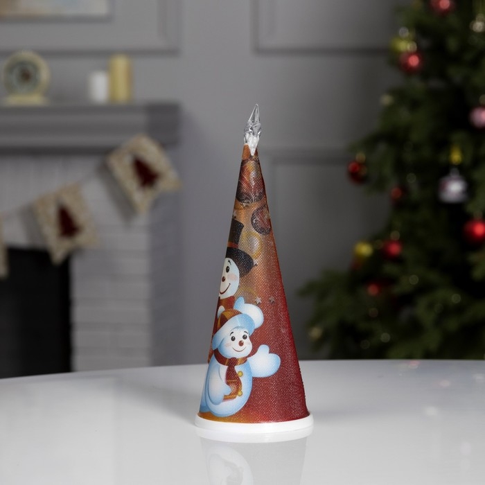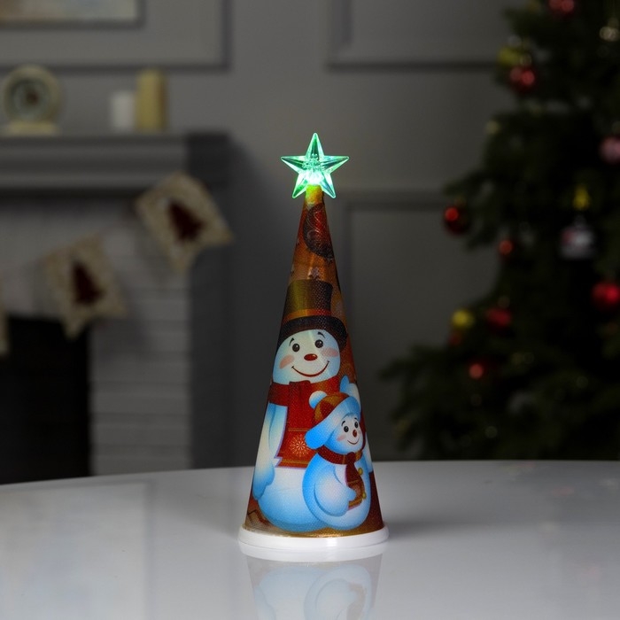 Светодиодная фигура «Ёлка со снеговиками» 7.5 × 21 × 7.5 см, пластик, батарейки CR2032х1 (в комплекте), свечение мульти