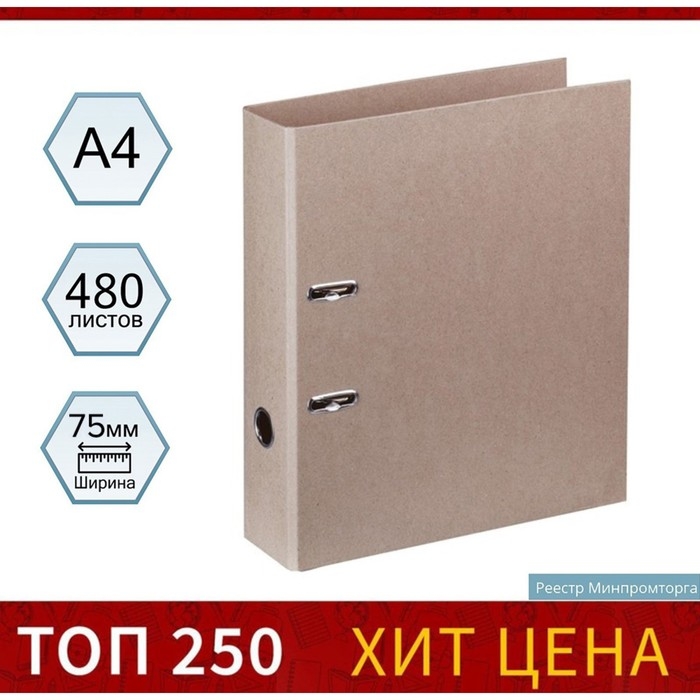 Папка-регистратор А4, 75 мм, Calligrata "Доступный офис", картон, без покрытия, эконом