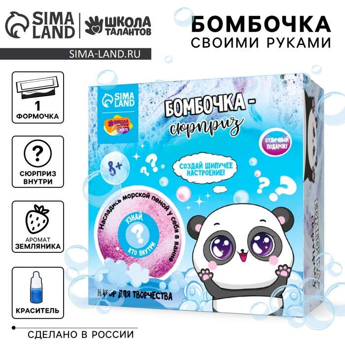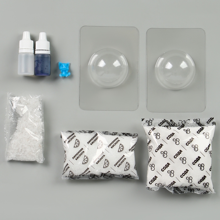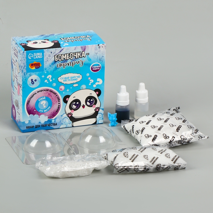 Набор для творчества позволит создать ароматную бомбочку для ванн с сюрпризом. Все необходимые компоненты уже есть в комплекте.