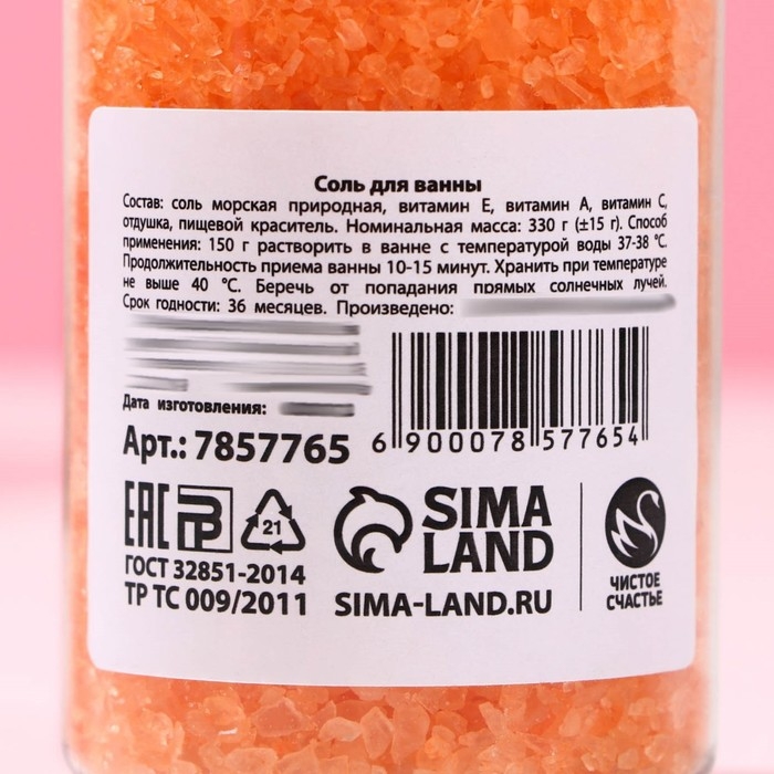 Соль для ванны «Мечтай!», 330 г, аромат сочного цитруса, ЧИСТОЕ СЧАСТЬЕ
