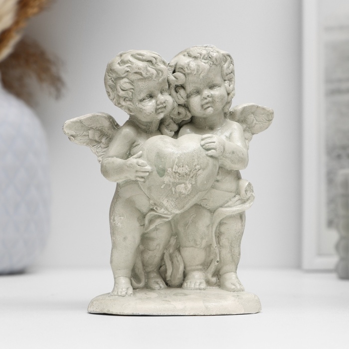 Фигура "Ангелочки с сердцем" состаренный, 12х11х6см