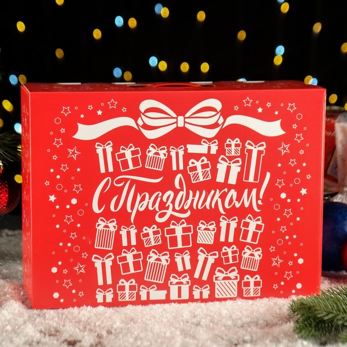 Новый год. Коробка подарочная складная "Базовый" 36,5 х 11 х 26 см.