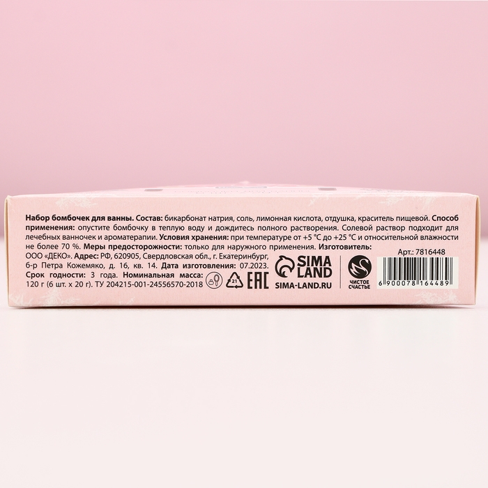 Подарочный набор косметики новогодний New Year, бомбочки для ванны, 6 х 20 г, аромат морозной ягоды, Новый Год