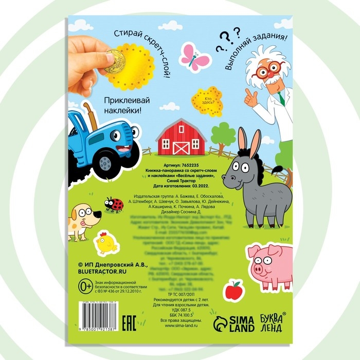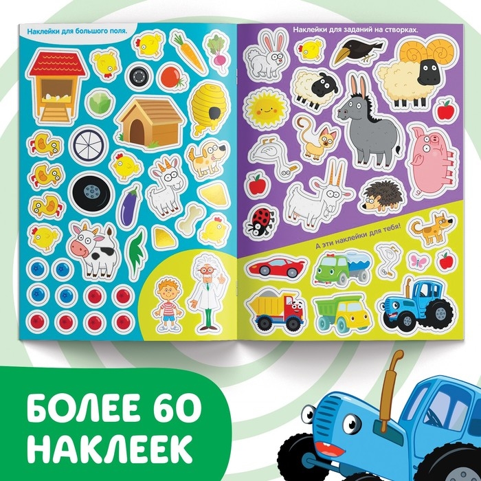 Книжка-раскладушка со скретч-слоем и наклейками «Весёлые задания», Синий трактор