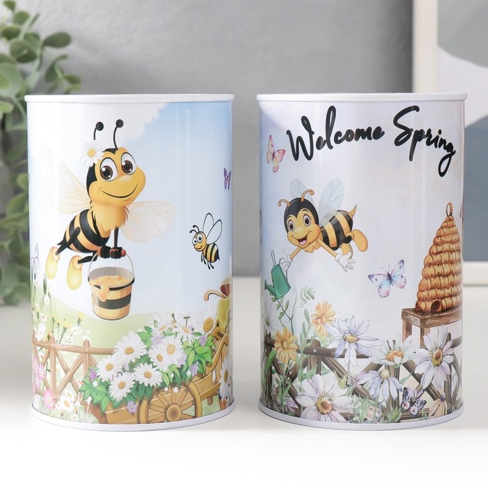 Копилка металл "Пчёлки" МИКС 8х8х12,5 см