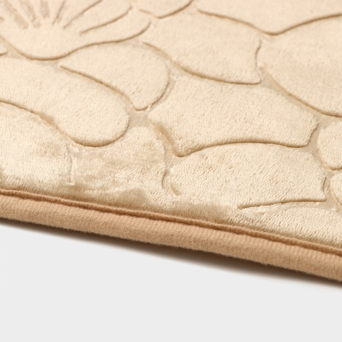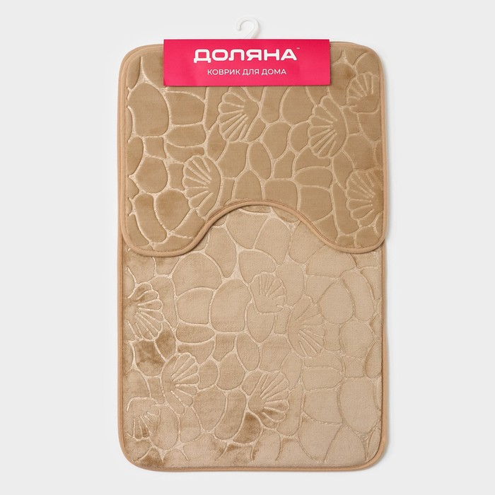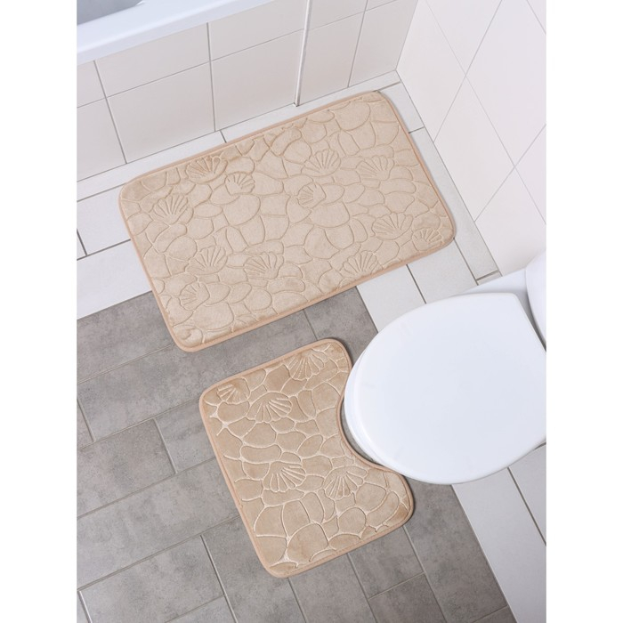 Коврики для ванной и туалета Доляна «Галька, ракушки», 2 шт: 39×40 см, 50×80 см, цвет бежевый