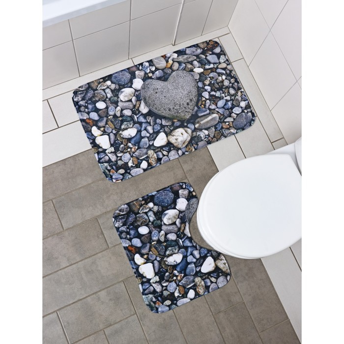 Набор ковриков для ванной и туалета Доляна «Галька», 2 шт, 40×50, 50×80 см