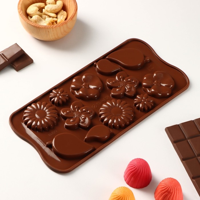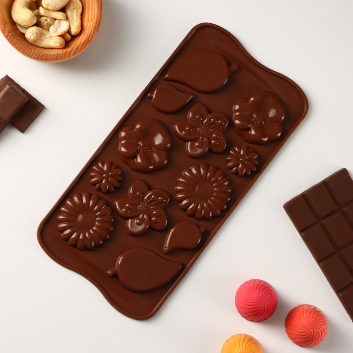 Форма для шоколада Доляна «Цветение», силикон, 21×10,5×0,7 см, 12 ячеек