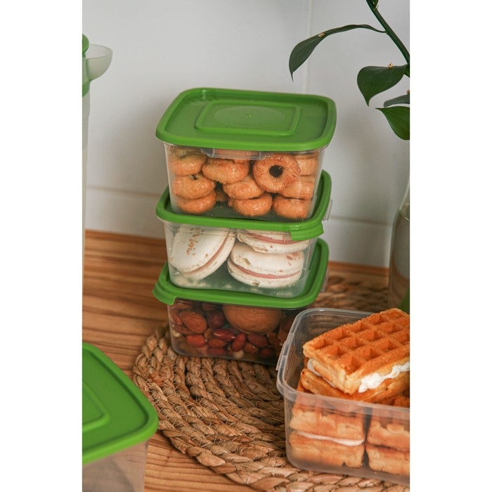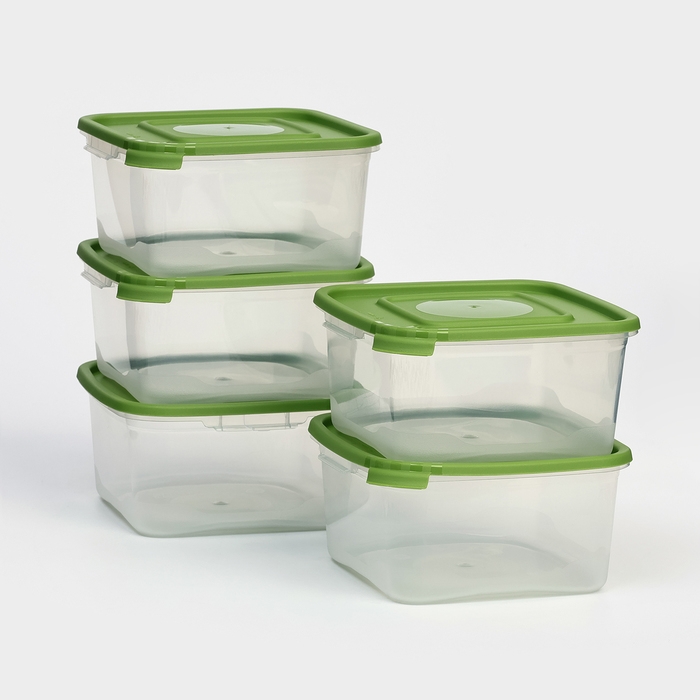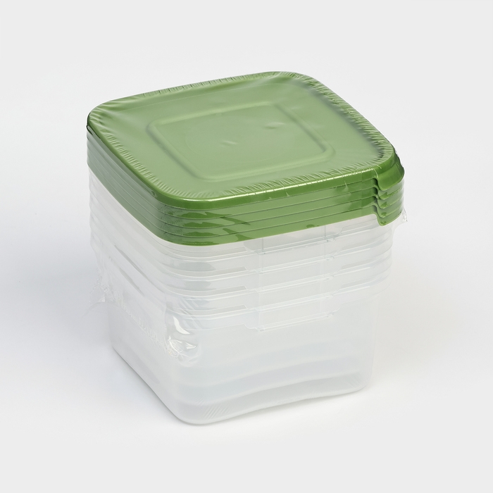 Набор контейнеров пищевых Доляна, 5 шт, 460 мл, 11×11×11 см, квадратные, прозрачные, крышки зелёные