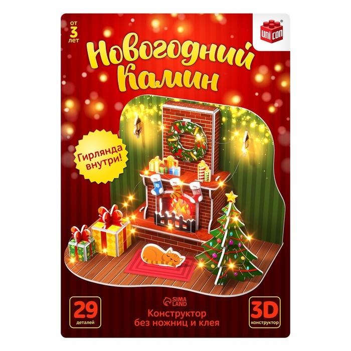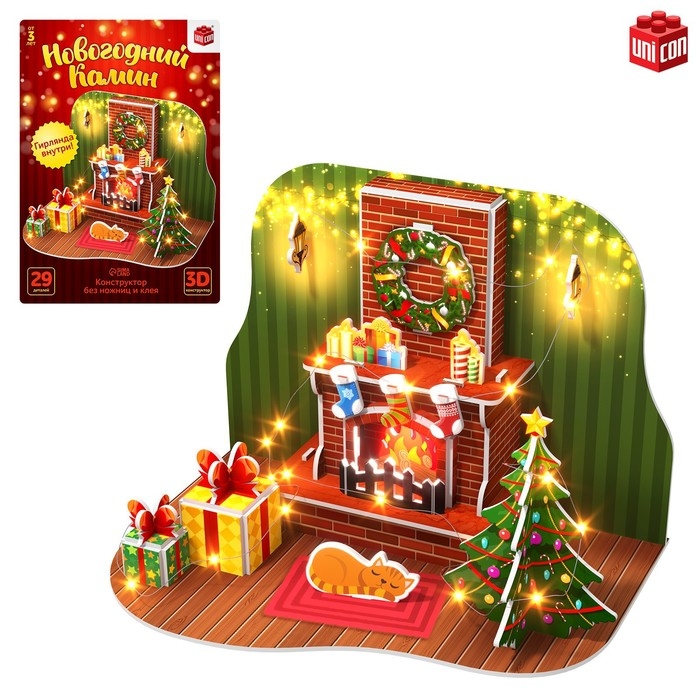 3D Конструктор «Новогодний камин», 29 деталей и гирлянда