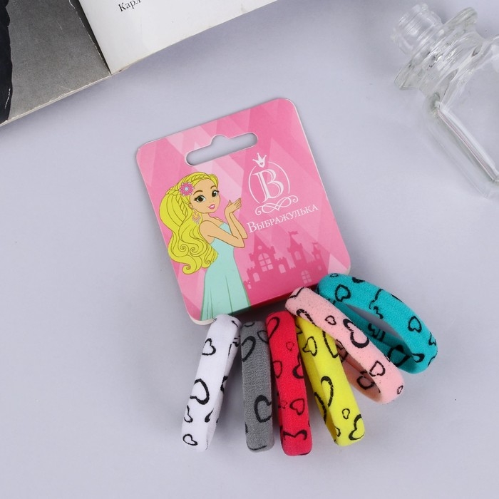 Резинка для волос "Лина" (набор 6 шт) сердечки, 4 см